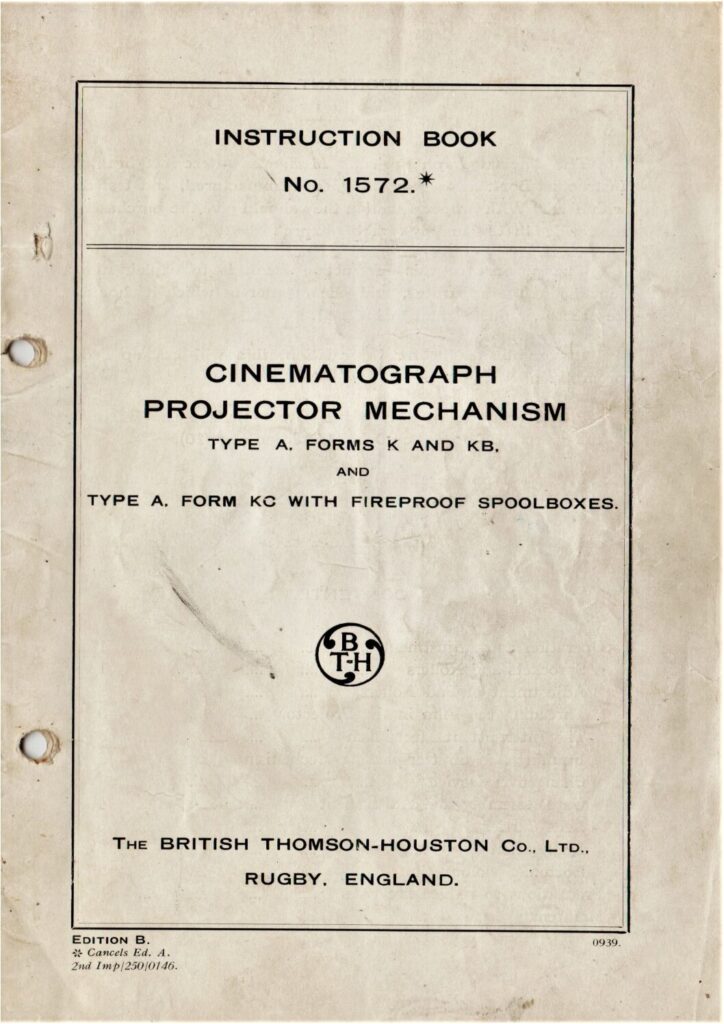 Instruction book no. 1572 for the BT-H type A. projector mechanisms.