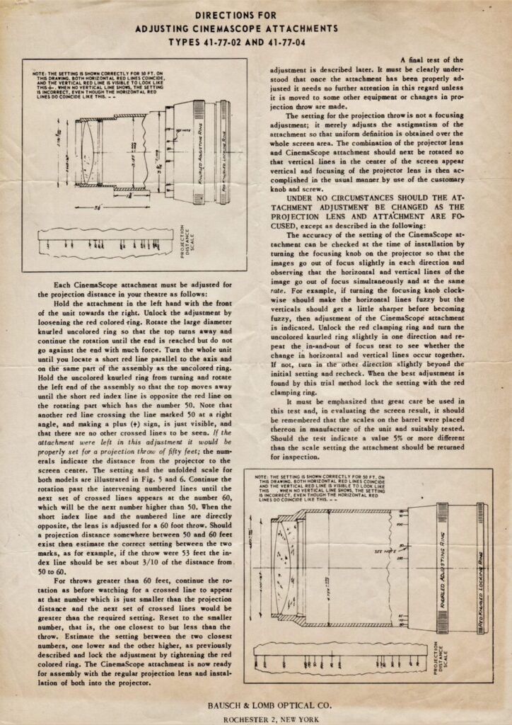 Directions For Adjusting CinemaScope Attachments – Types 41-77-02 and 41-77-04