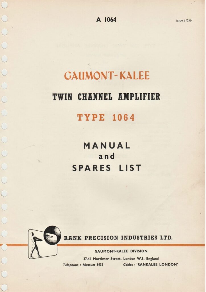 Gaumont-Kalee Twin Channel Amplifier Type 1064 – Manual and Spares List
