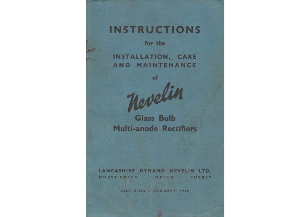 Instructions for the Installation, Care And Maintenance of Nevelin Glass Bulb Multi-anode Rectifiers