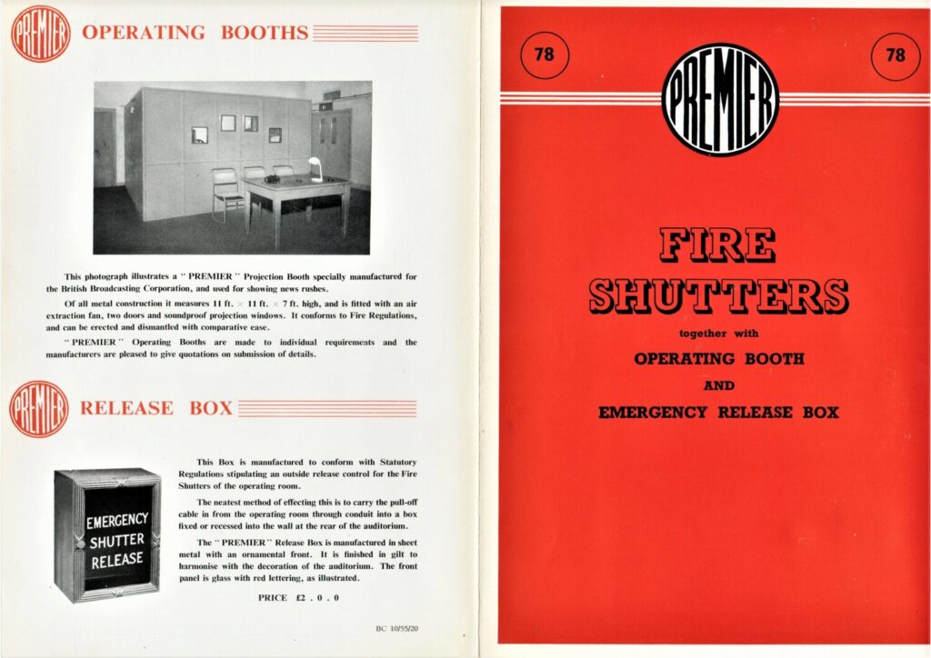 Information on fire shutters and operating booth and emergency release box from Premier.