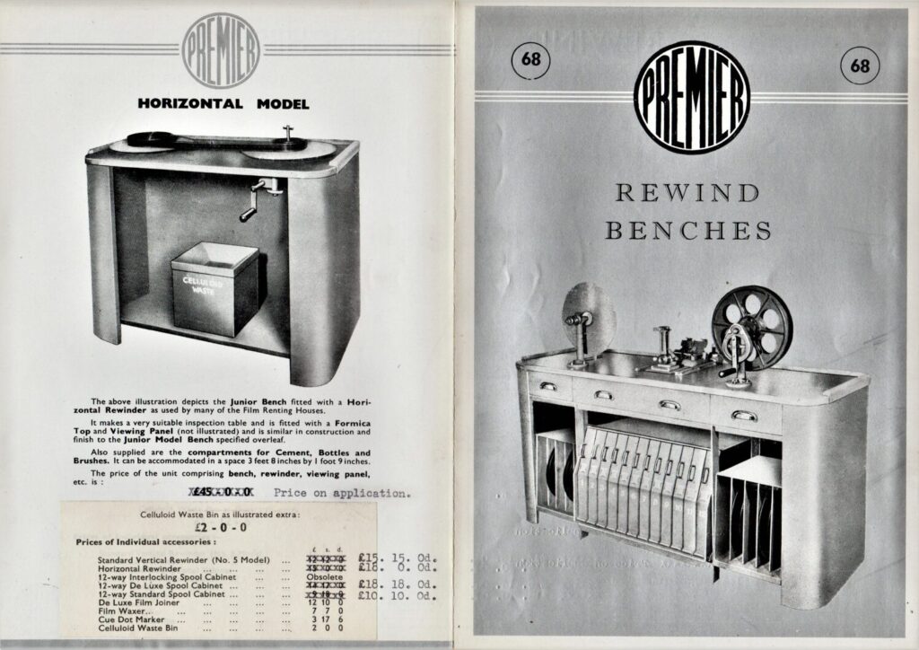 Brochure sheet for rewind benches by Premiere, including the De-Luxe and Junior models.