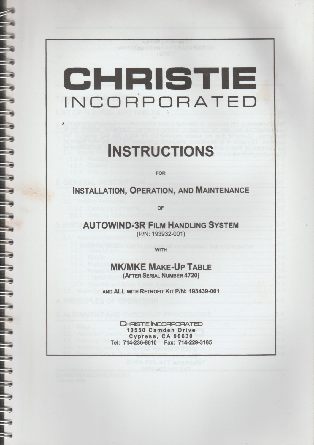 Instructins for the Christie Autowind-3R platter and MK/MKE make-up table.