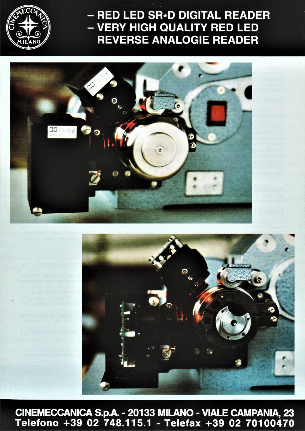 Information sheet for the Cinemeccanica red LED Dolby Digitla reader.