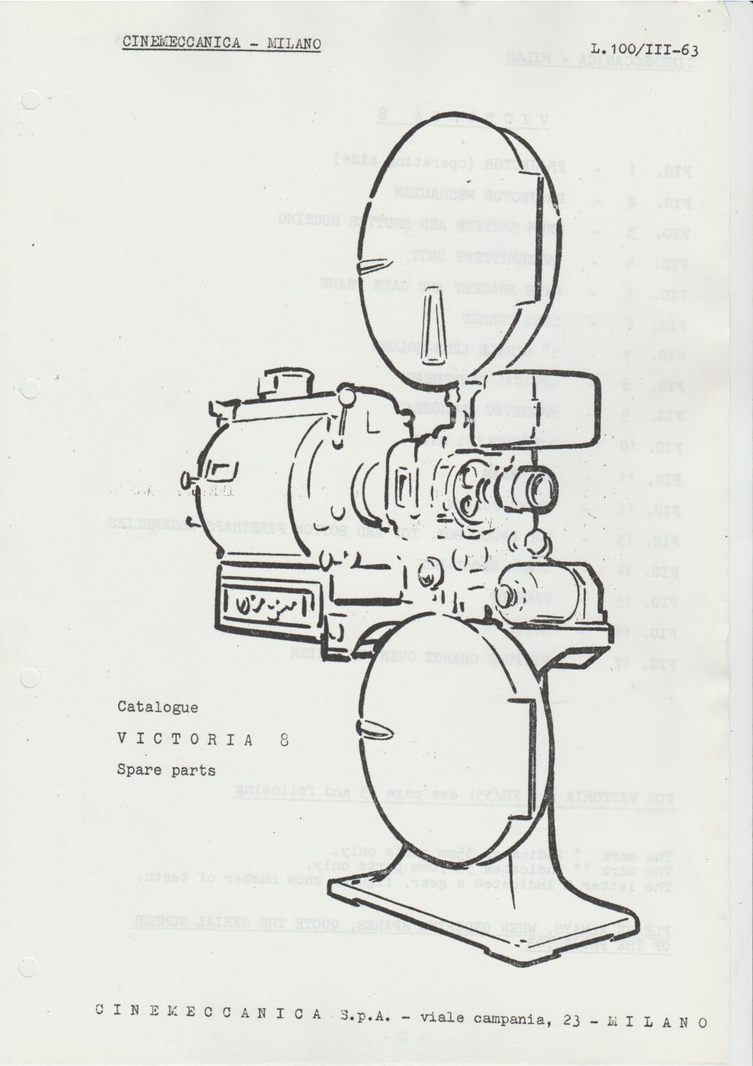The spare parts catalogue for the Cinemeccanica Victoria 8.