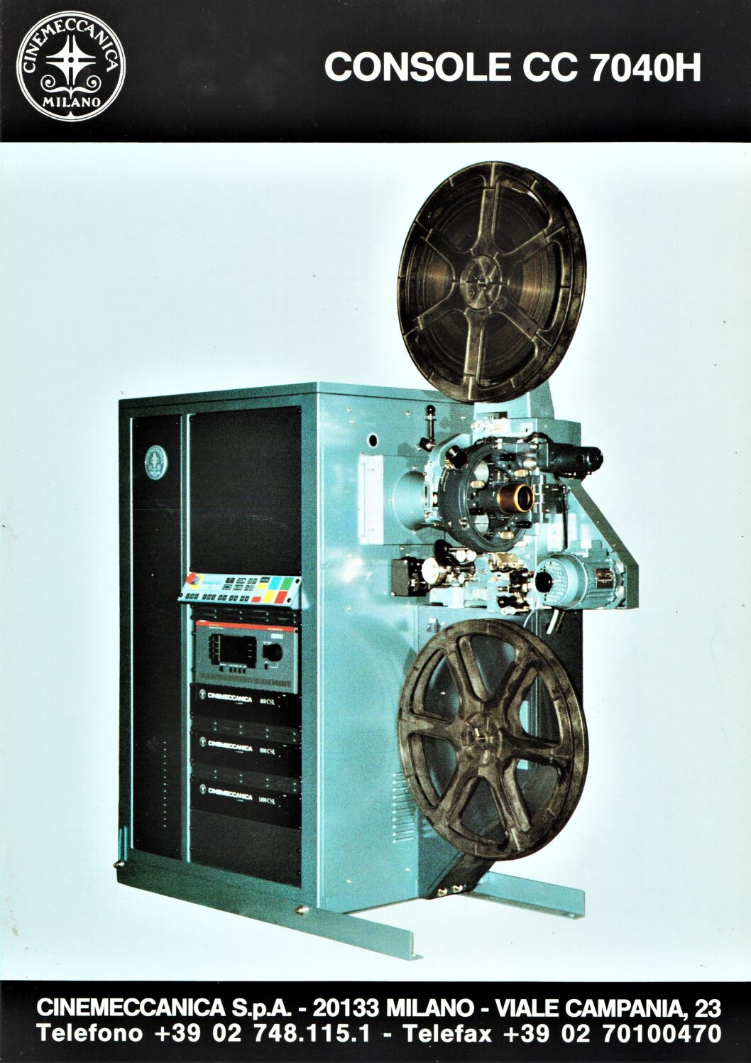 The specification and datasheet for the Cinemeccanica CC 7040 H console projector.