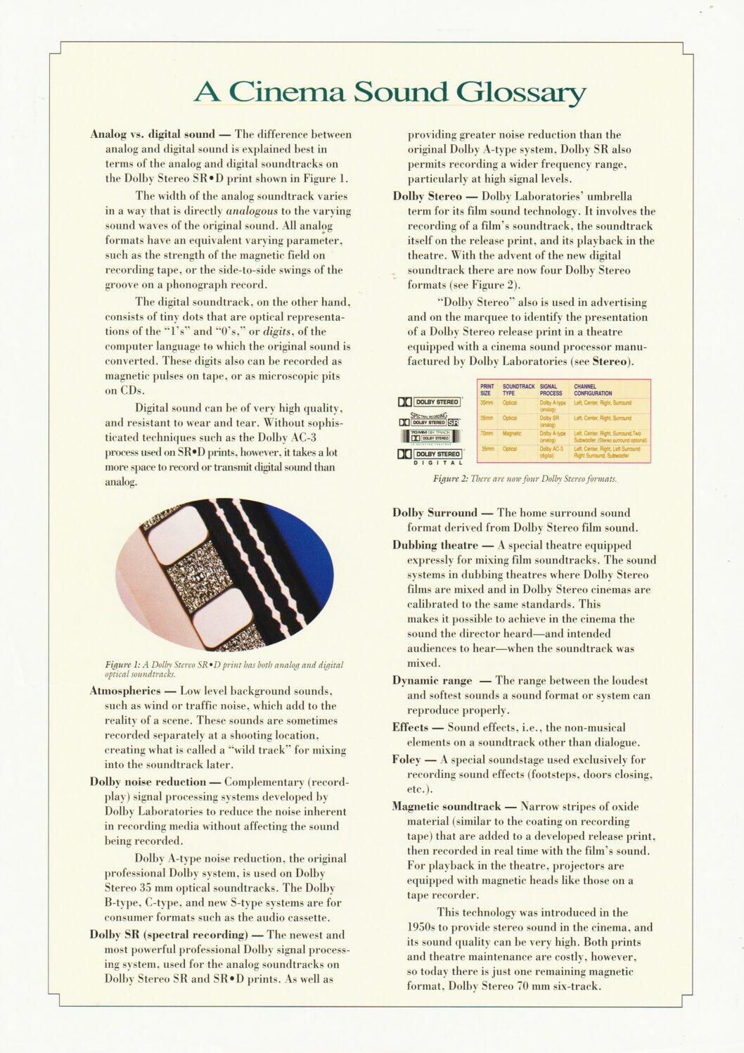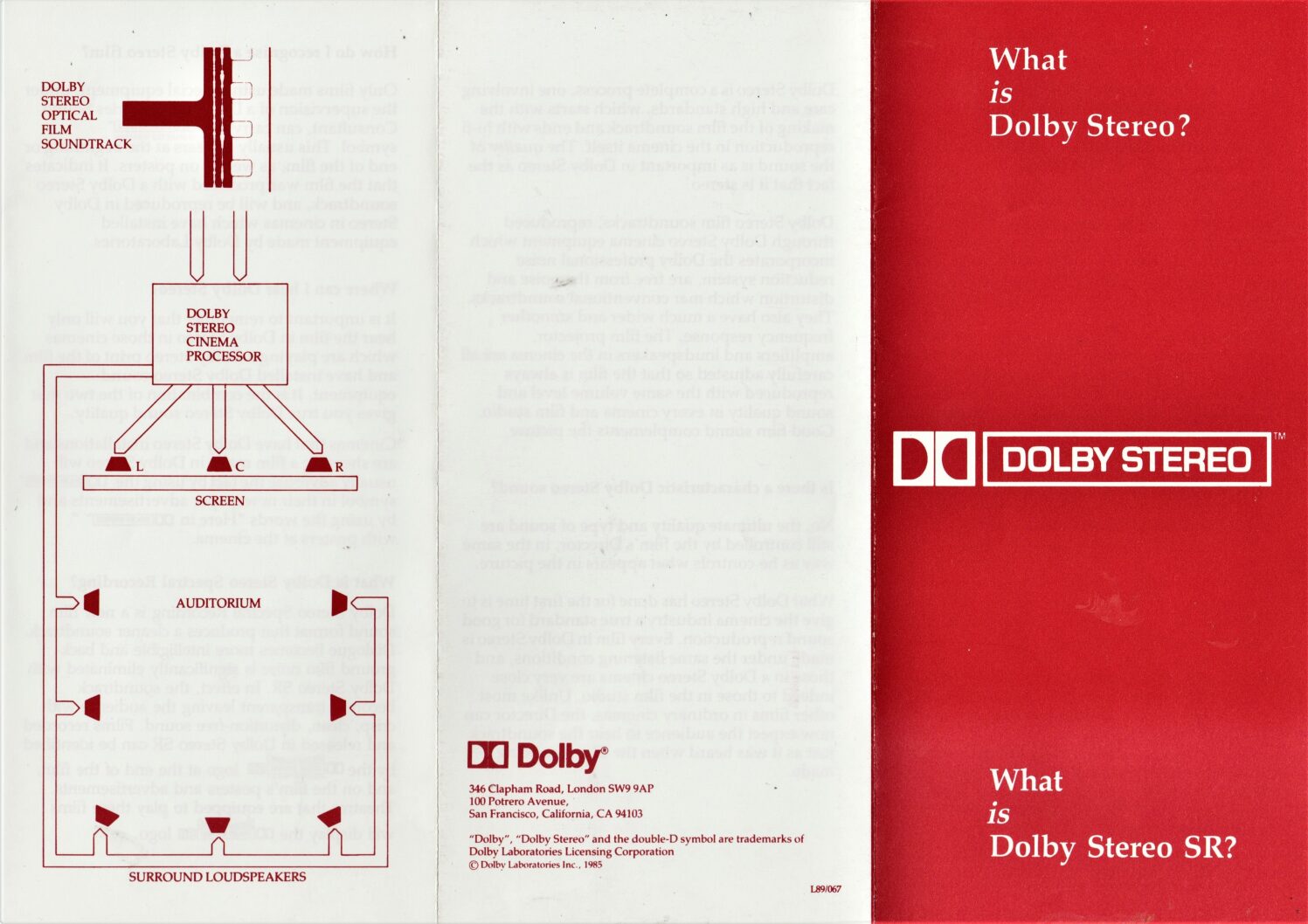 A leaflet by Dolby explaining Dolby Stereo and Spectral Recording.