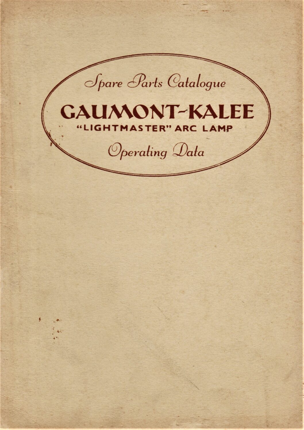 • Gaumont-Kalee “Lightmaster” Arc Lamp – Spare Parts Catalogue – Operating Data