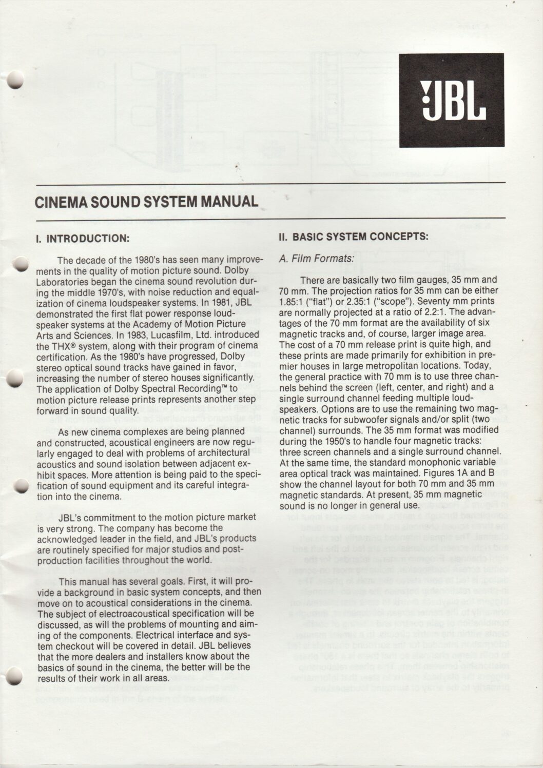 Information about sound systems in cinemas from JBL, published in the 1990.
