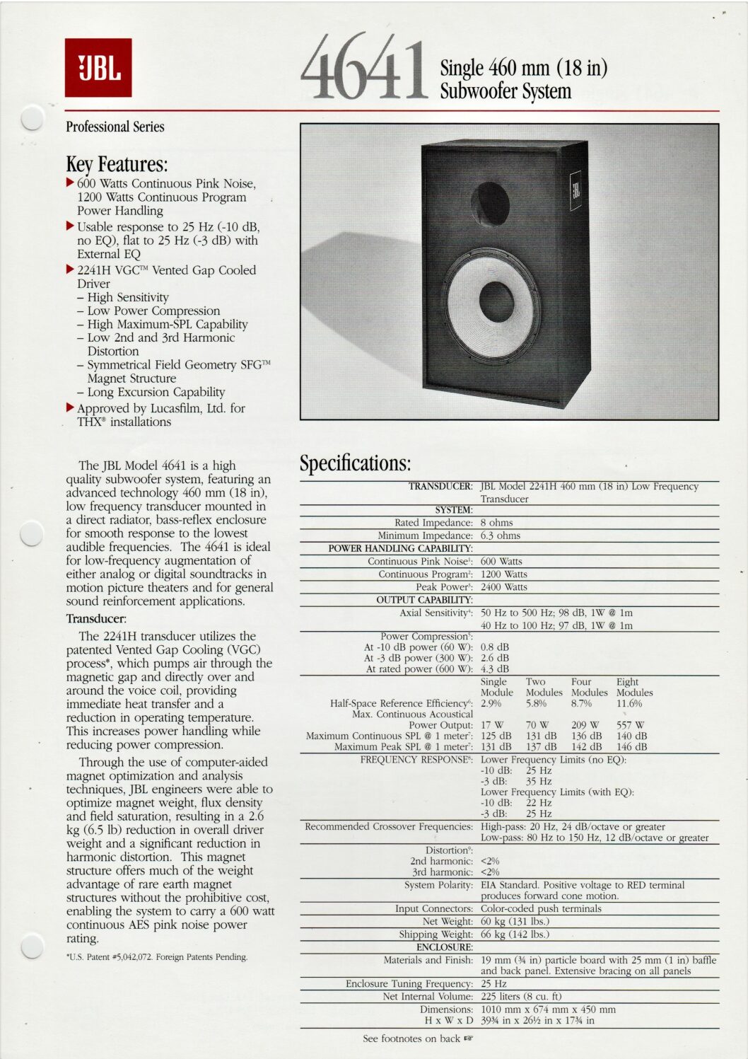 • JBL 4641 Single 460 mm (18 in) Subwooder System