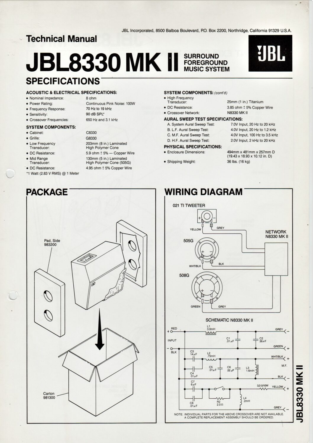 • Technical Manual – JBL8330 MK II