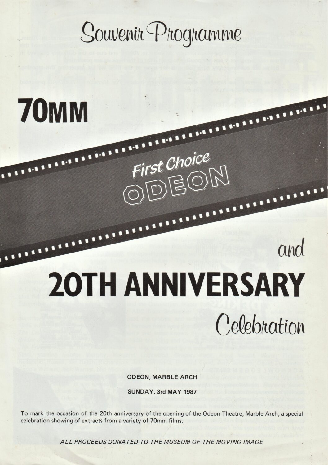 Souvenir programme for the 20th anniversary of the opening of the Odeon Marble Arch, Sunday 3rd May 1987.
