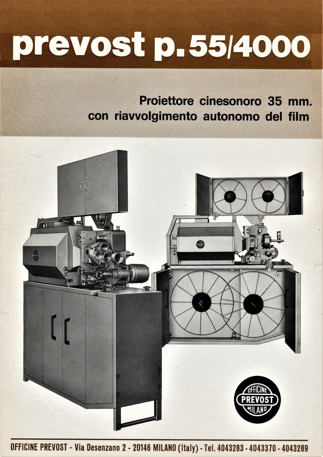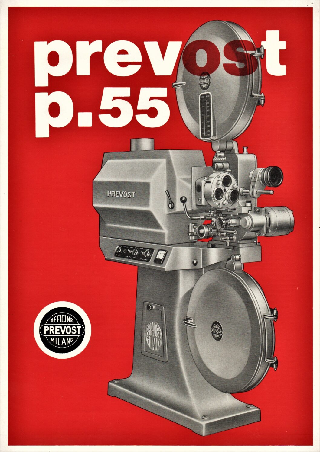 Information sheet about the P.55 Model P/55/4000 projector by Officine Prevost.