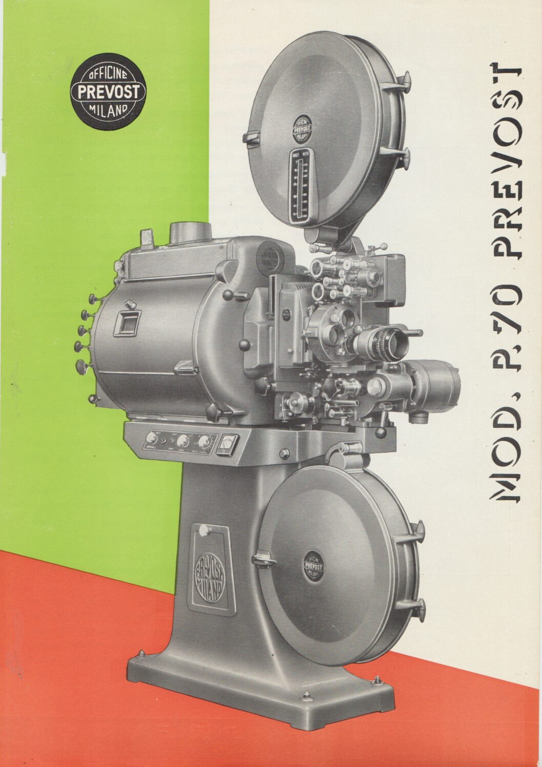 An information sheet about the Model P. 60 film projector from Officine Prevost.