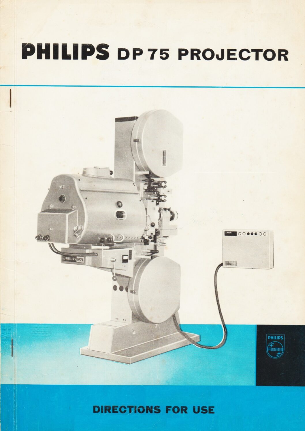 Brochure and technical data for the Philips DP 75 35/70mm film projector.