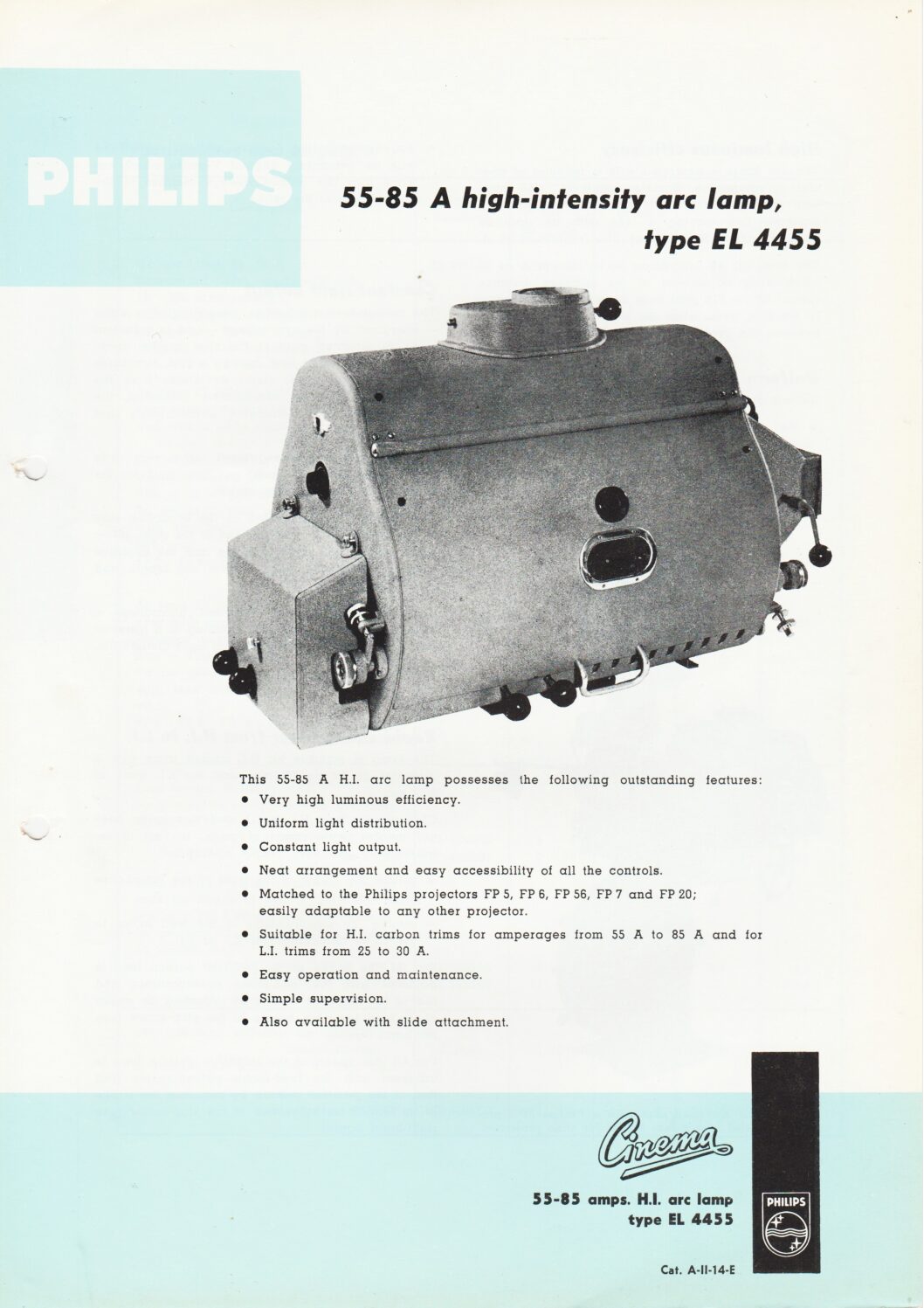 • Philips 55-85 A high-intensity arc-lamp, type EL 4455