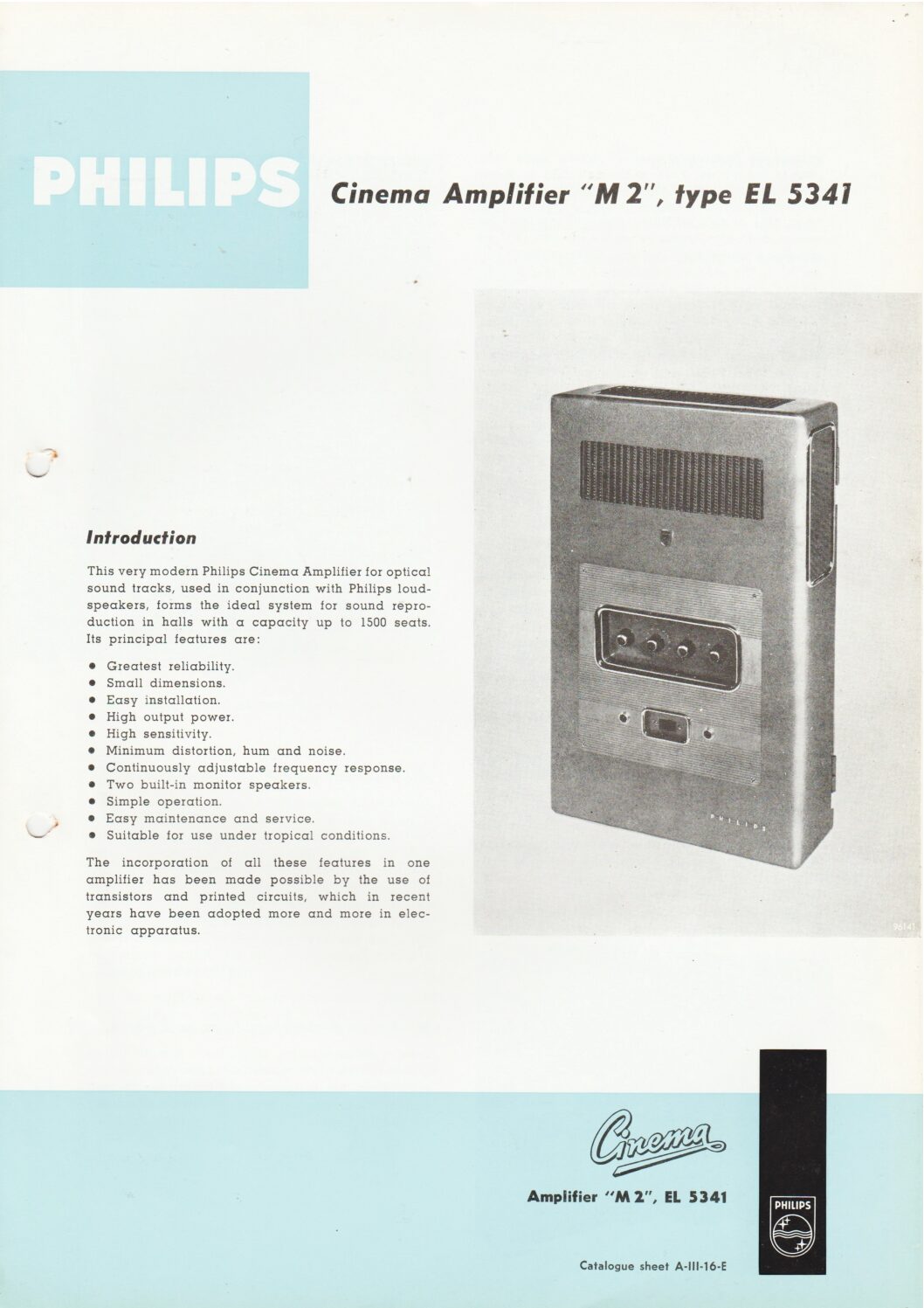 Information and data sheet on the Philips EL 5341 amplifier for cinemas.