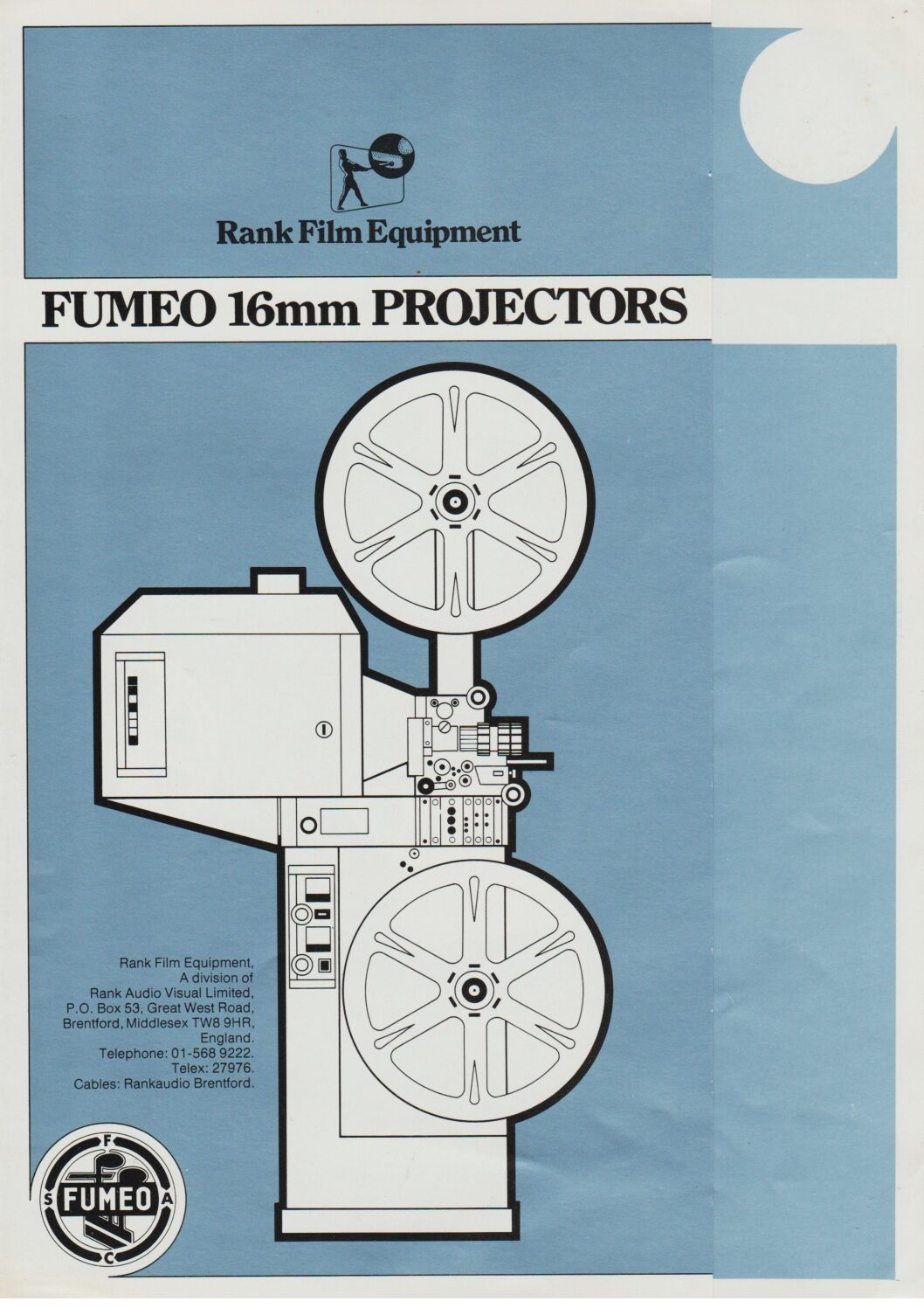 Information about and specifications for the range of 16mm film projectors from Fumeo.