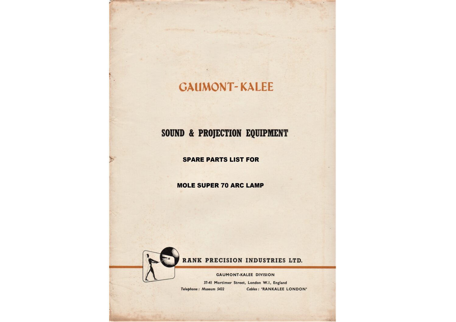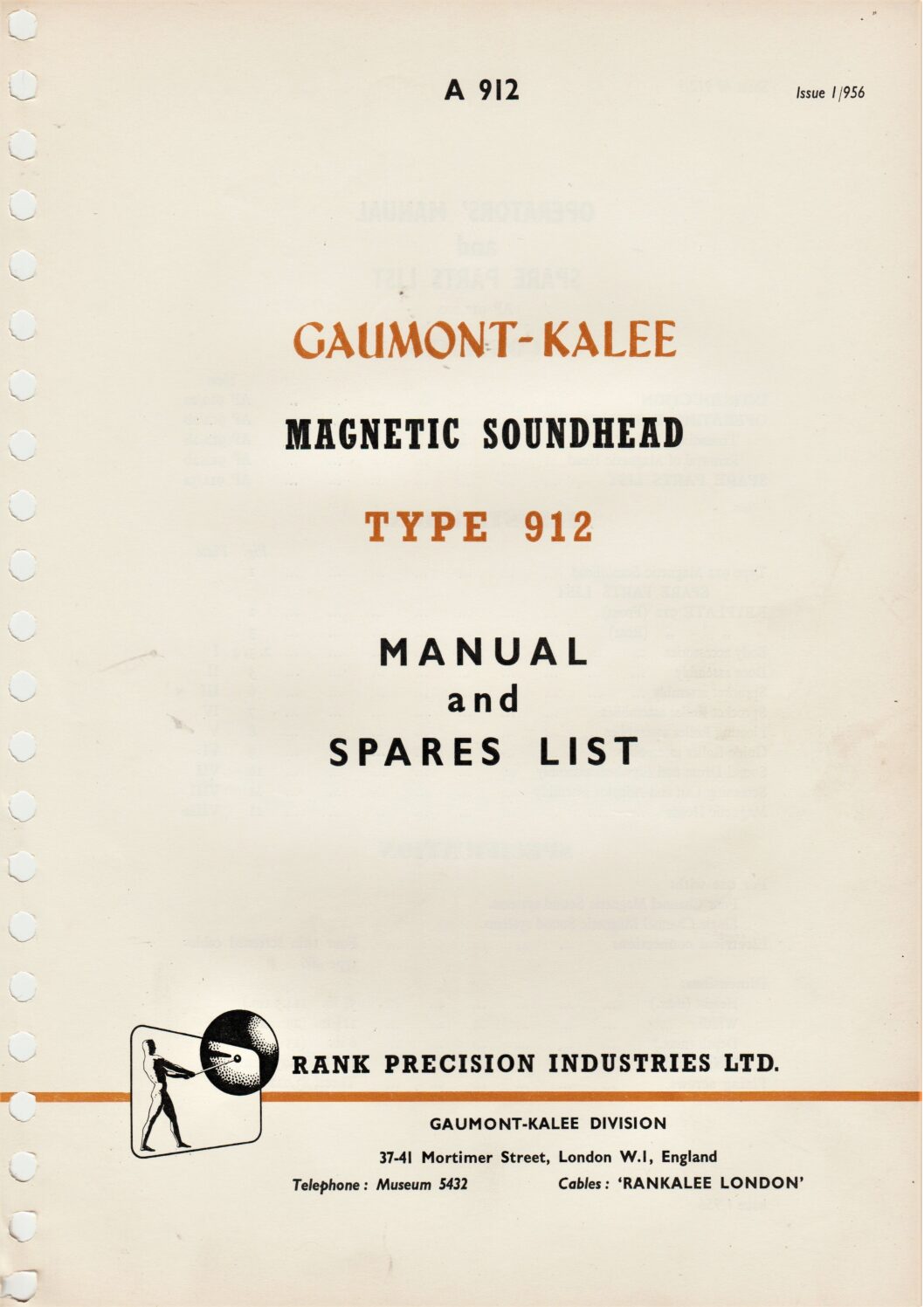 Instructions and spare parts list for the Gaumont-Kalee magnetic soundhead type 912.