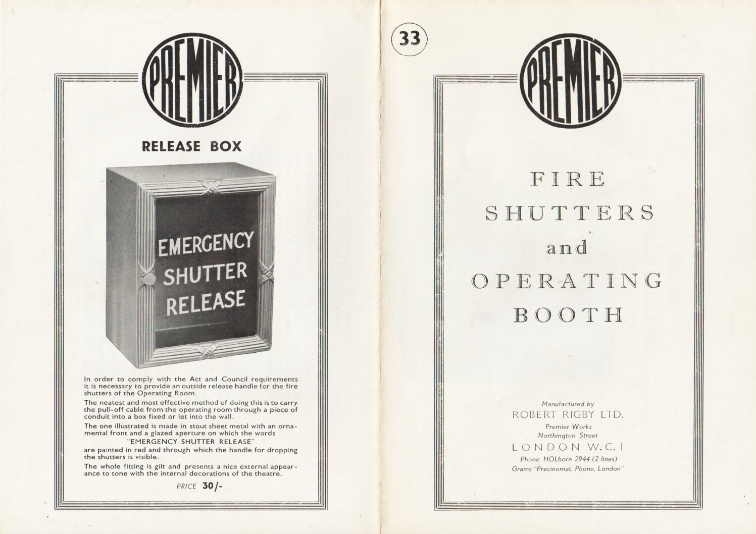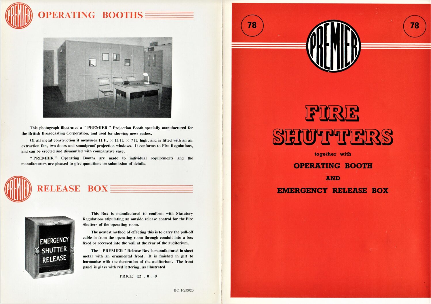 Information on fire shutters and operating booth and emergency release box from Premier.