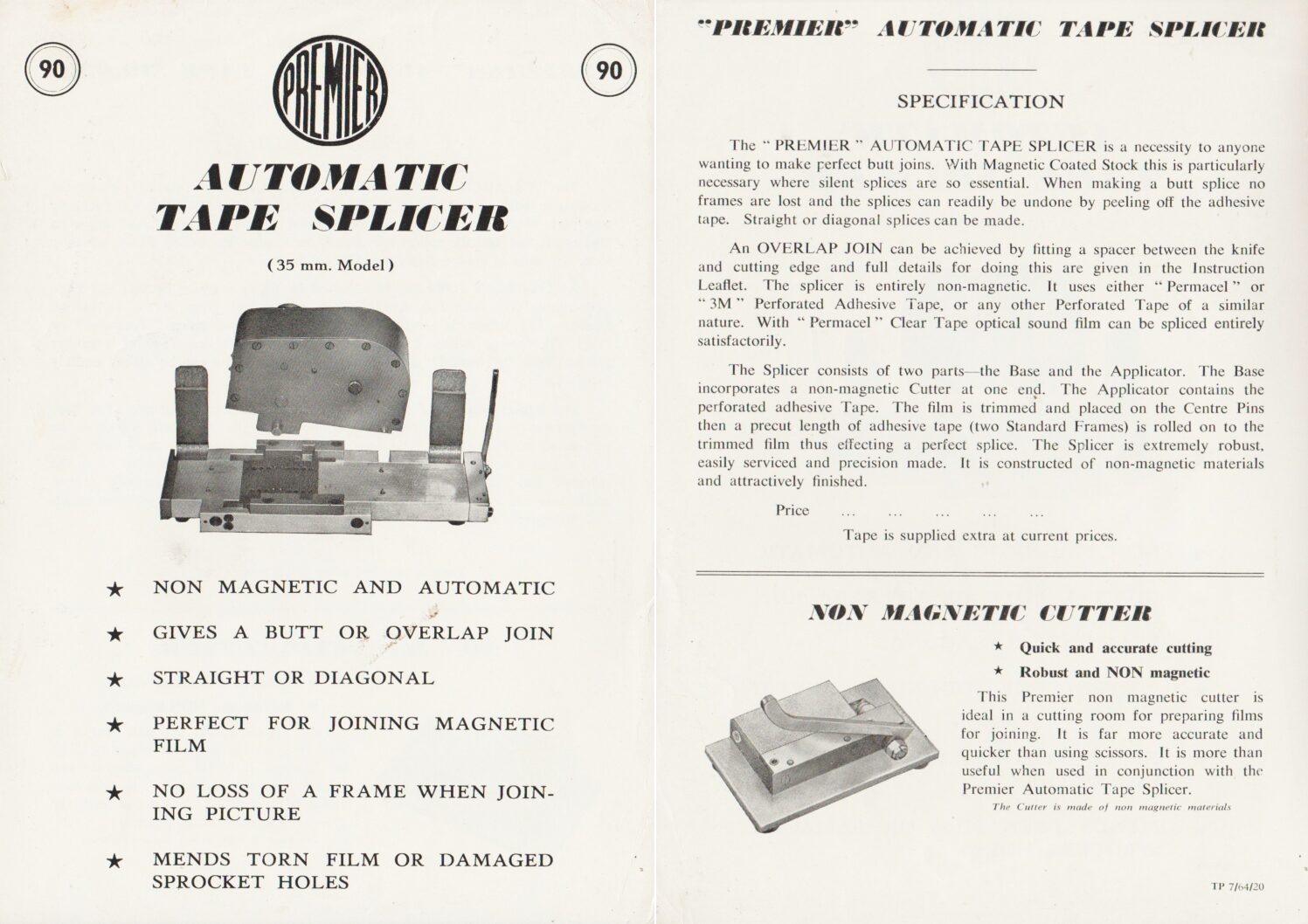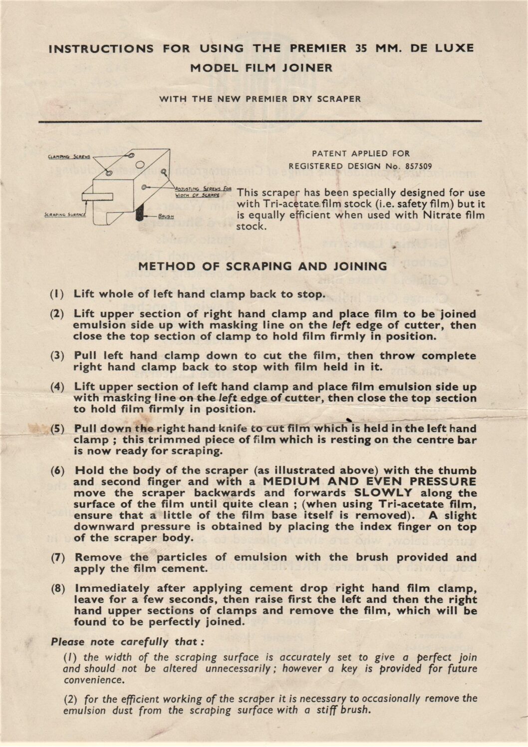 • Instructions for Using the Premier 35 mm. De Luxe Model Film Joiner