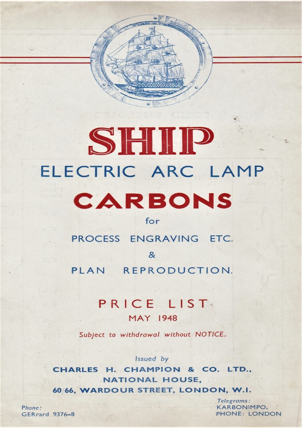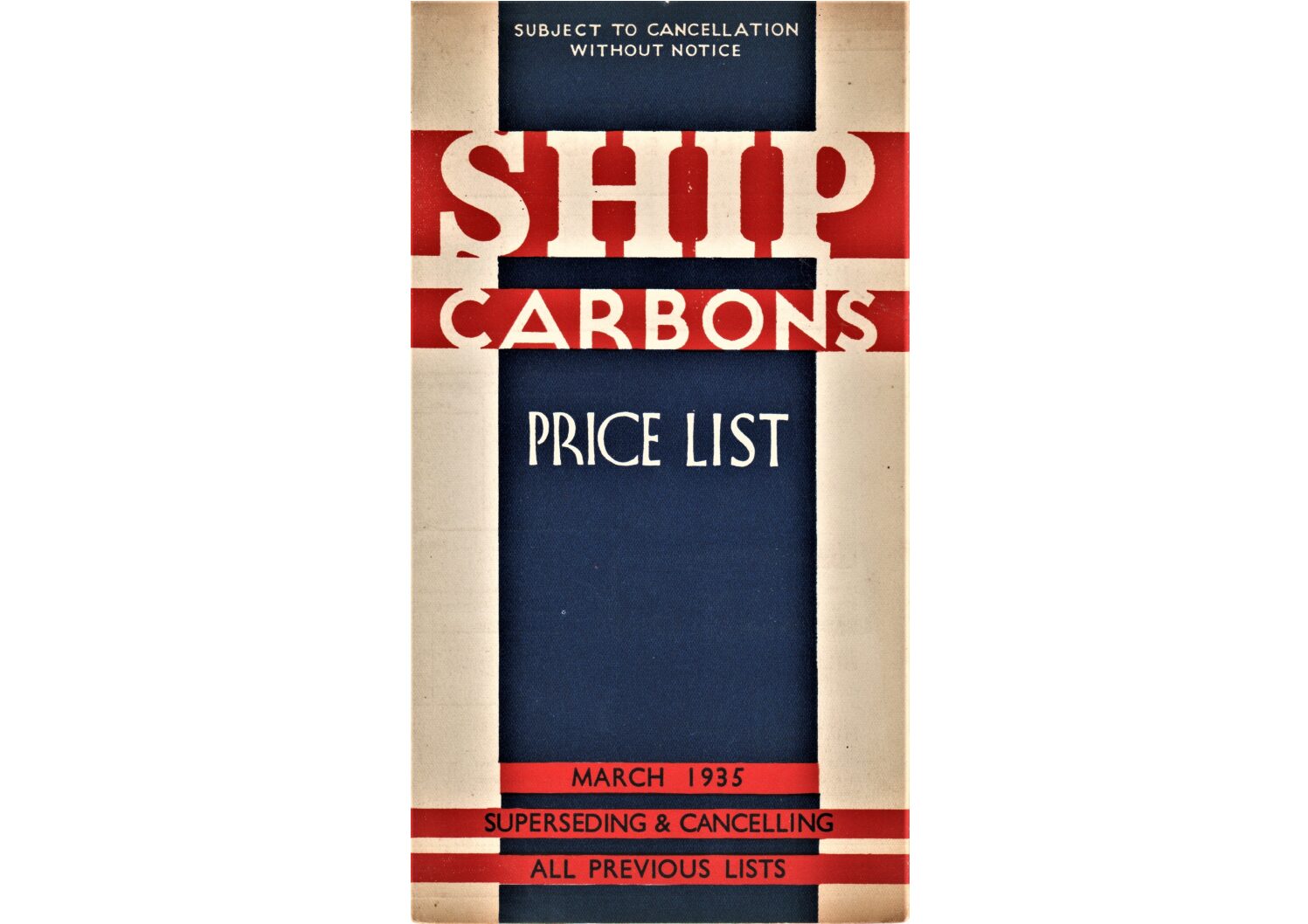 A price list for Ship Carbons dated March 1935.