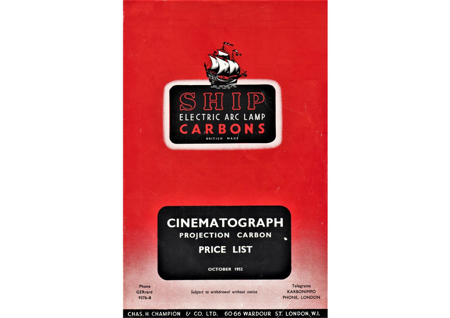 An October 1952 price list for Ship carbons.