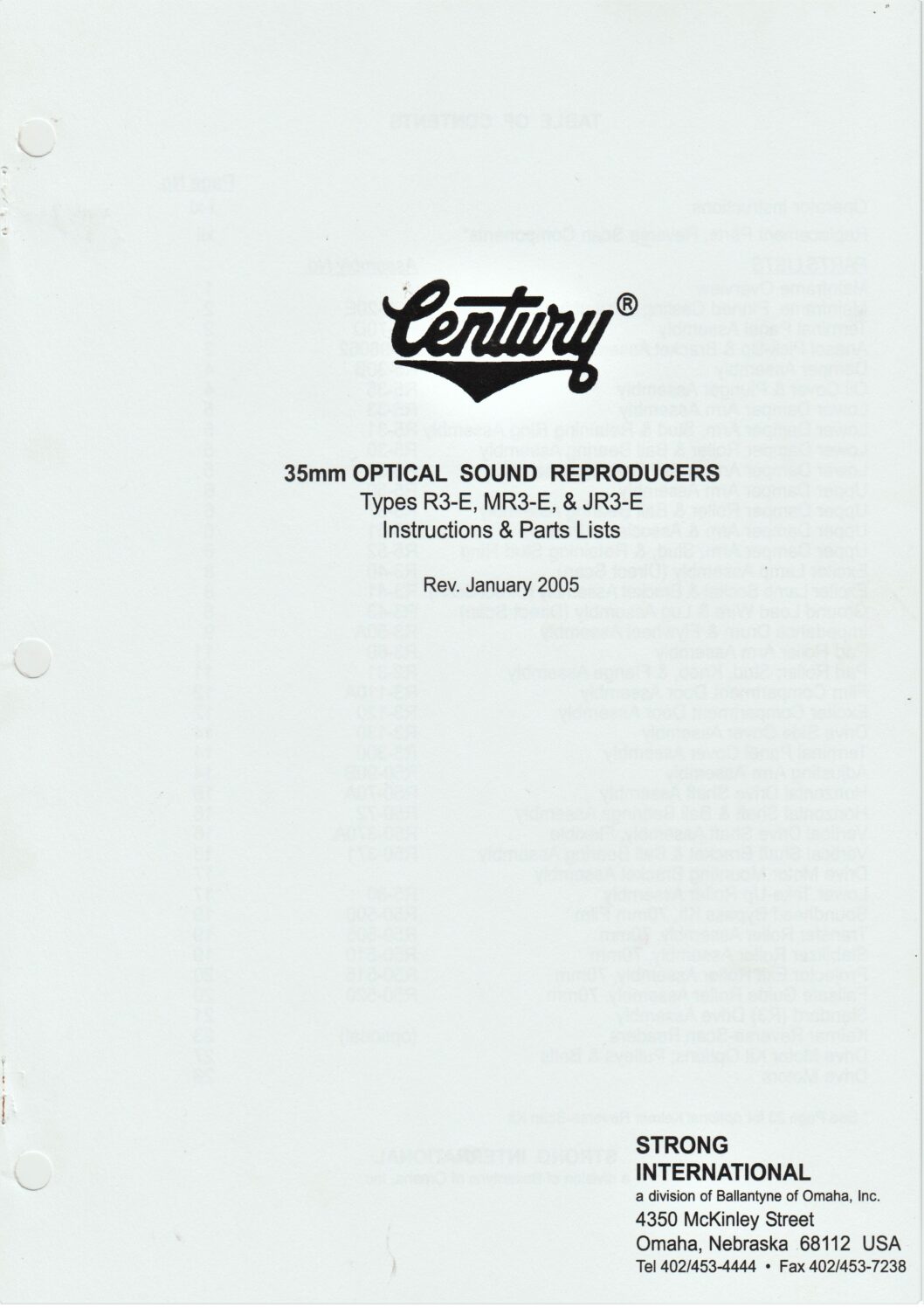 • Century – 35mm Optical Sound Reproducers Types R3-E, MR3-E, & JR3-E