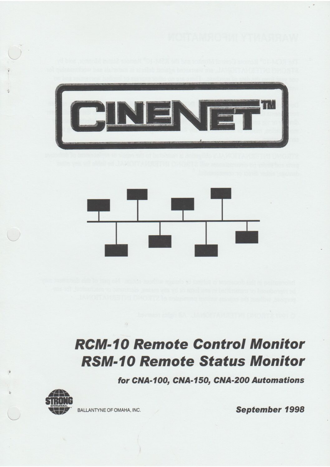 • CineNet – RCM-10 Remote Control Monitor – RSM-10 Remote Status Monitor
