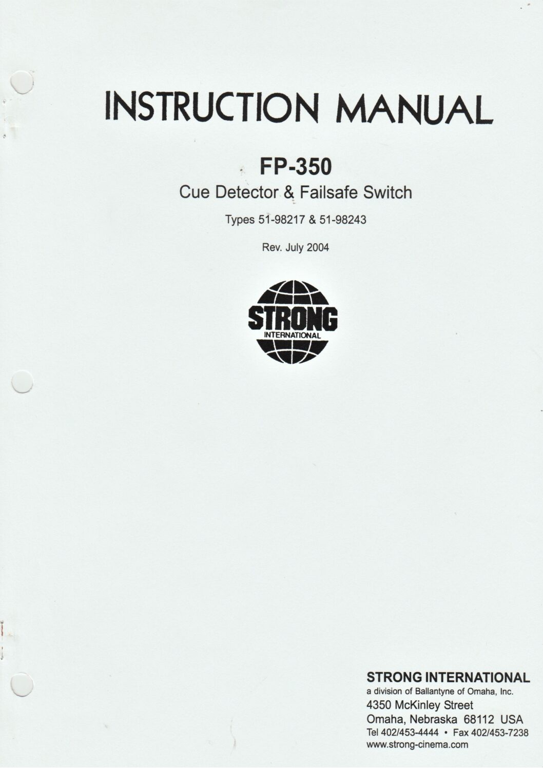 The instruction manual for the Strong Fp-350 cue detector and failsafe.