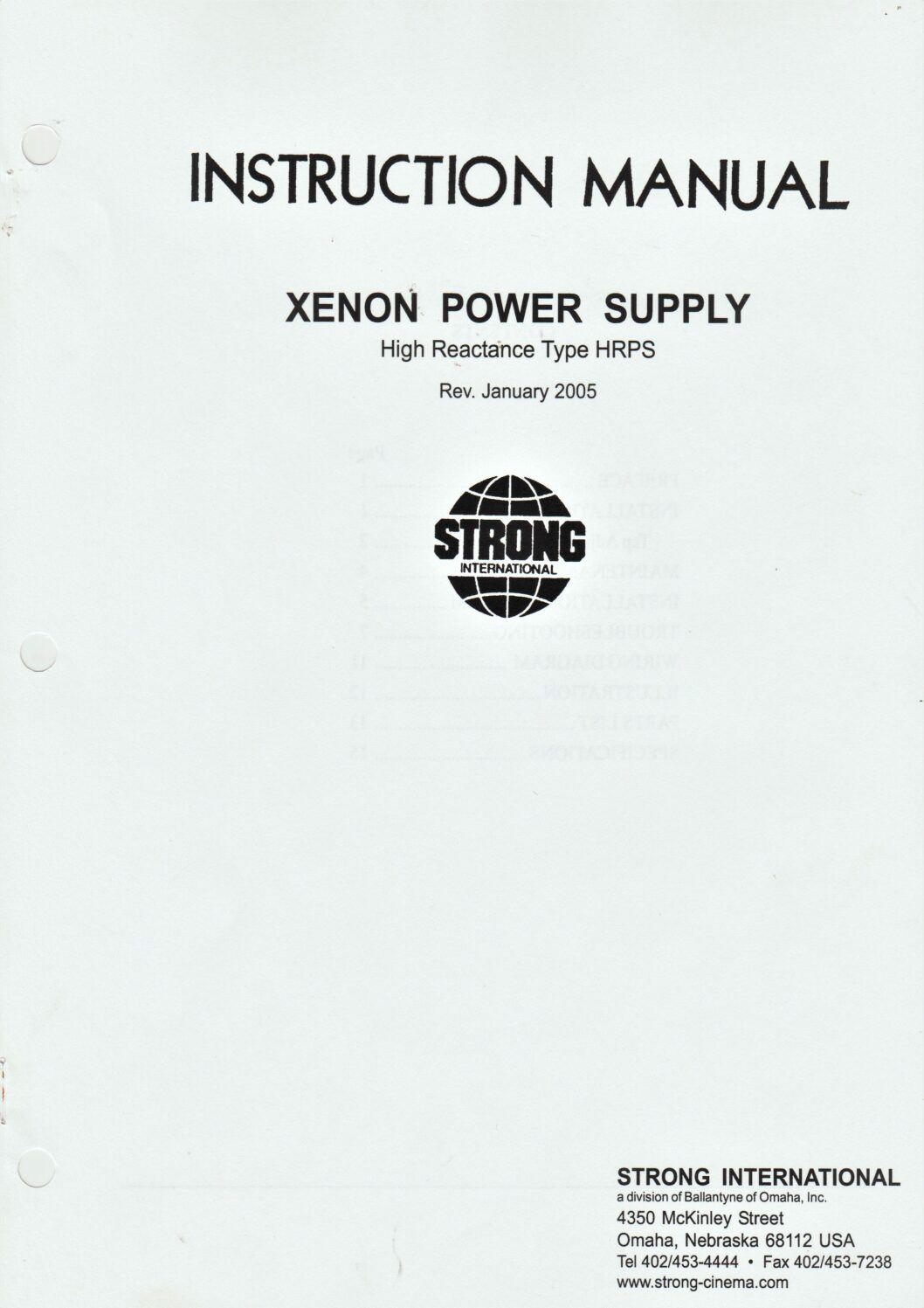 • Strong – Instruction Manual – Xenon Power Supply – High Reactance Type HRPS