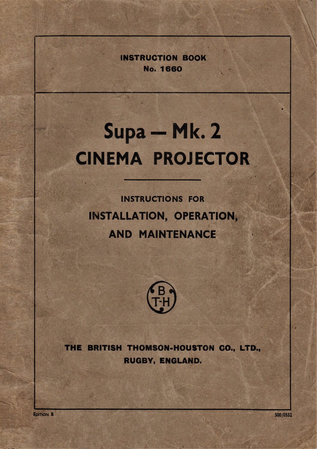 Operation and maintenance instructions for the BT-H Supa Mk. 2 film projector.