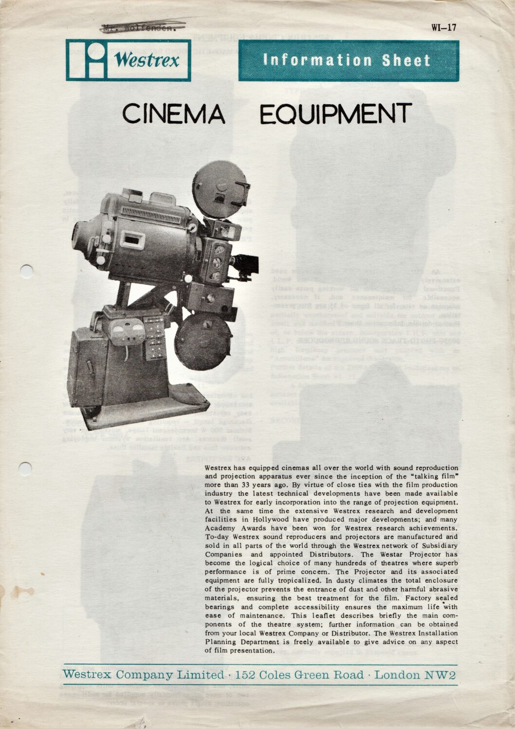 An information sheet covering the various cinema equipment manufactured by Westrex.