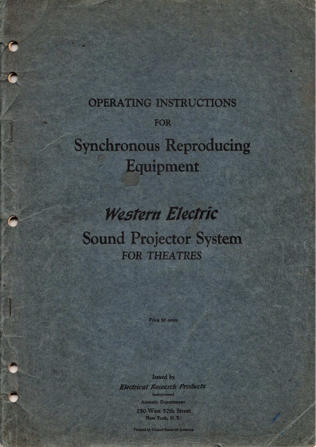 • Western Electric – Operating Instructions for Synchronous Reproducting Equipment