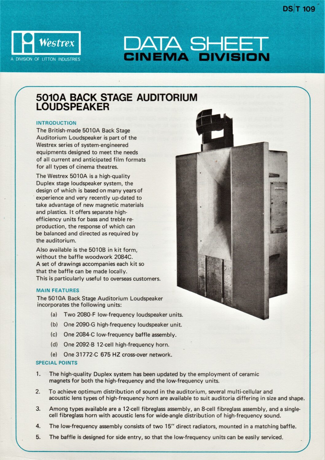 • Westrex Data Sheet – 5010A Back Stage Auditorium Loudspeaker