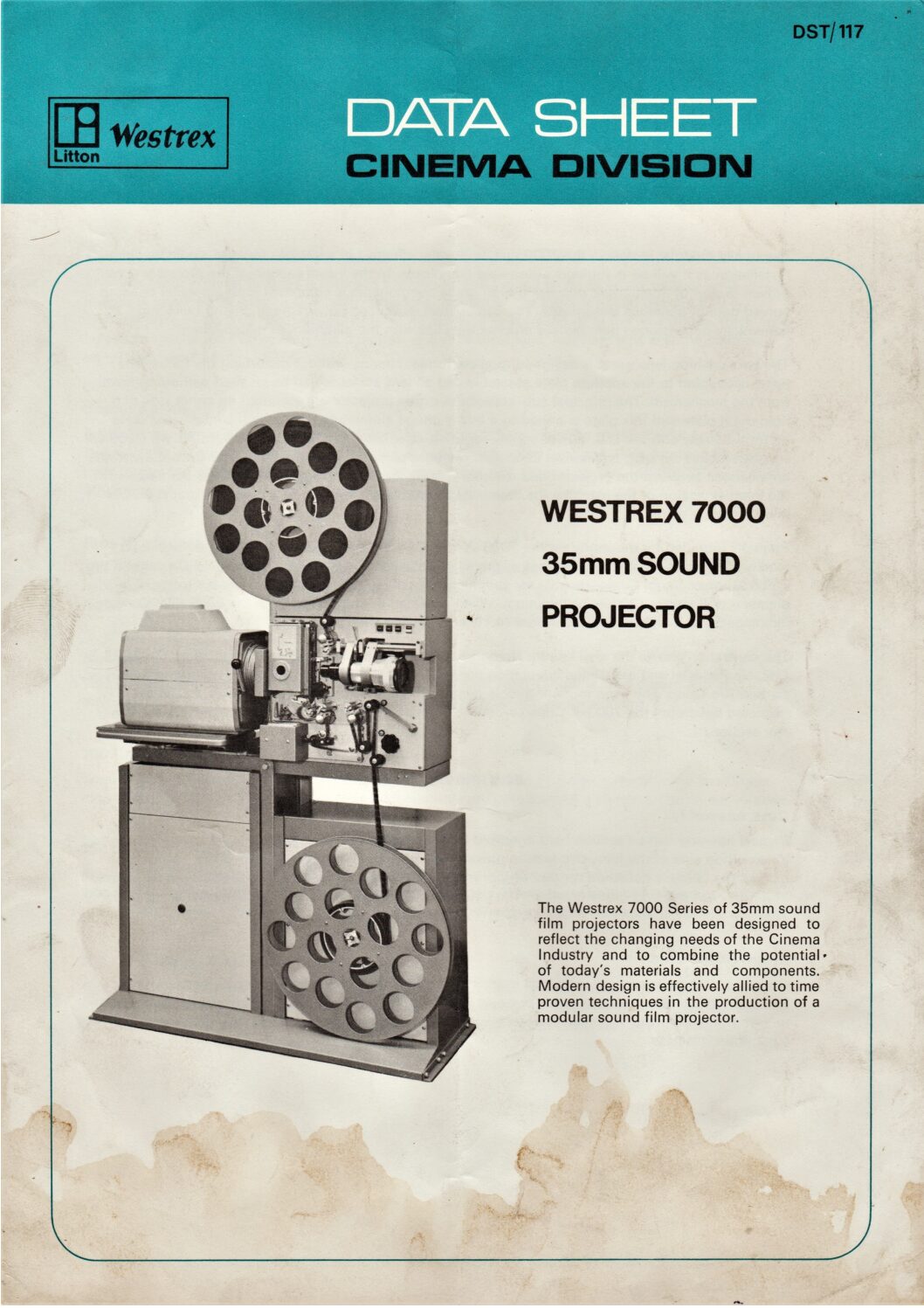 Data sheet for the Westrex 7000 35mm projector.