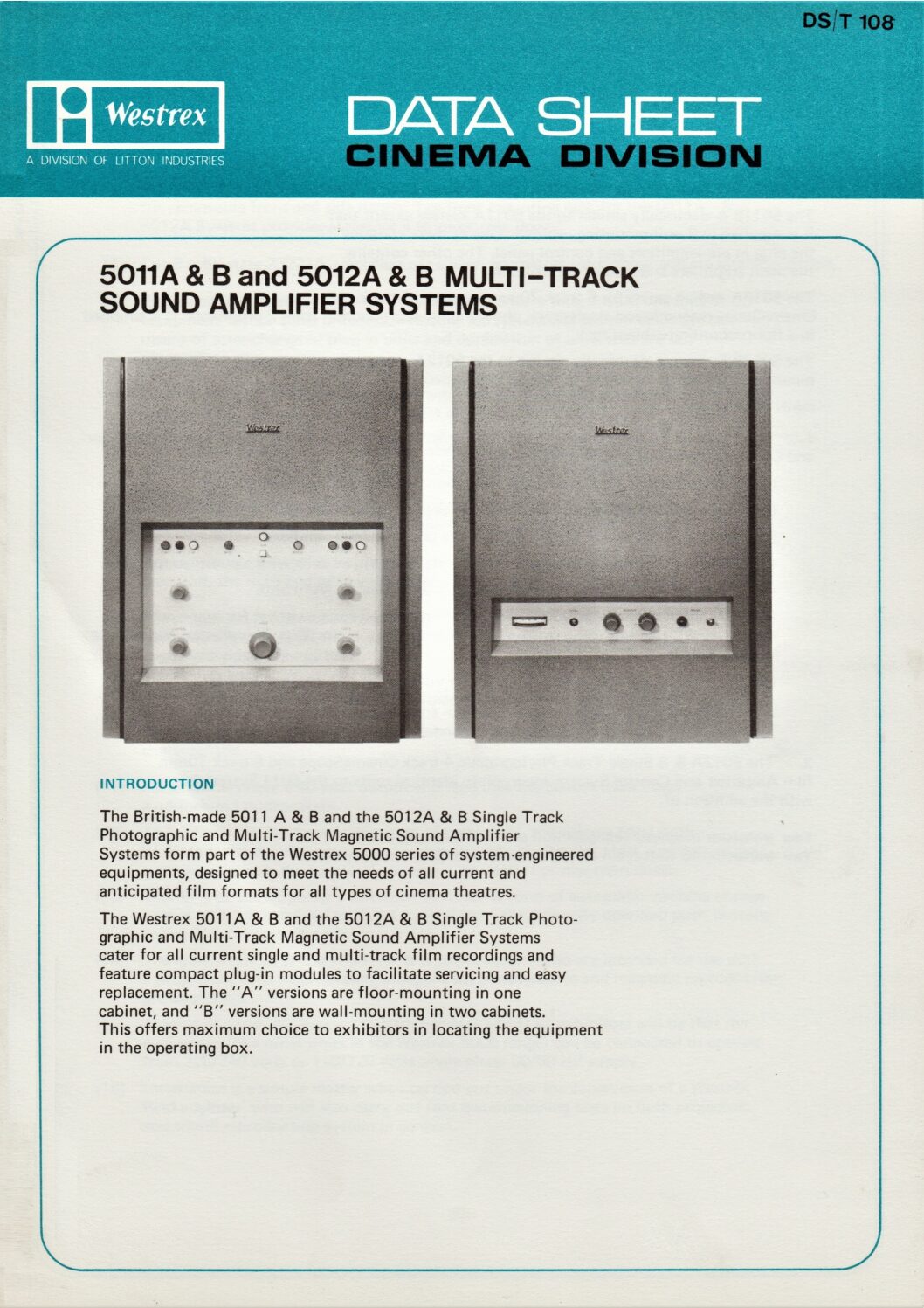 • Westrex Data Sheet – 5011A & B 5012A & B Multi-Track Sound Amplifier Systems