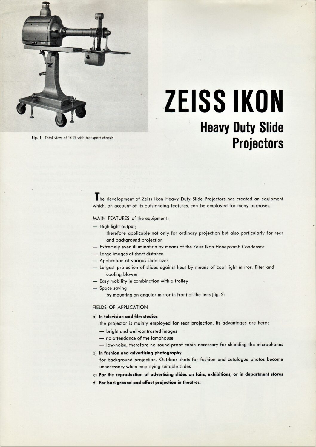 Information and dimensional data on slide projectors from Zeiss Ikon.