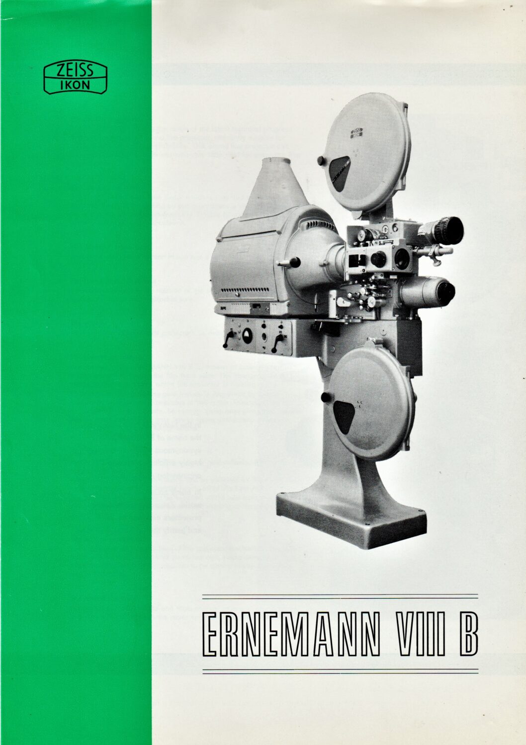 Information sheet about the Ernemann VIII B 35mm film projector.