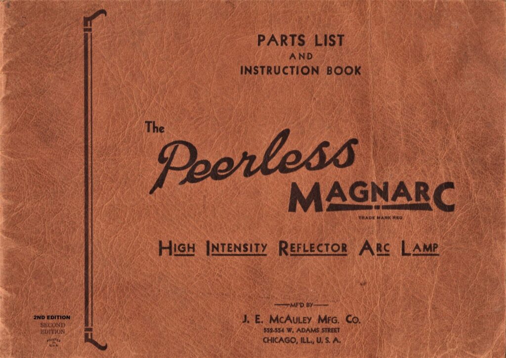 Instructions and parts list for the Peerless Magnarc carbon arc lamphouse.