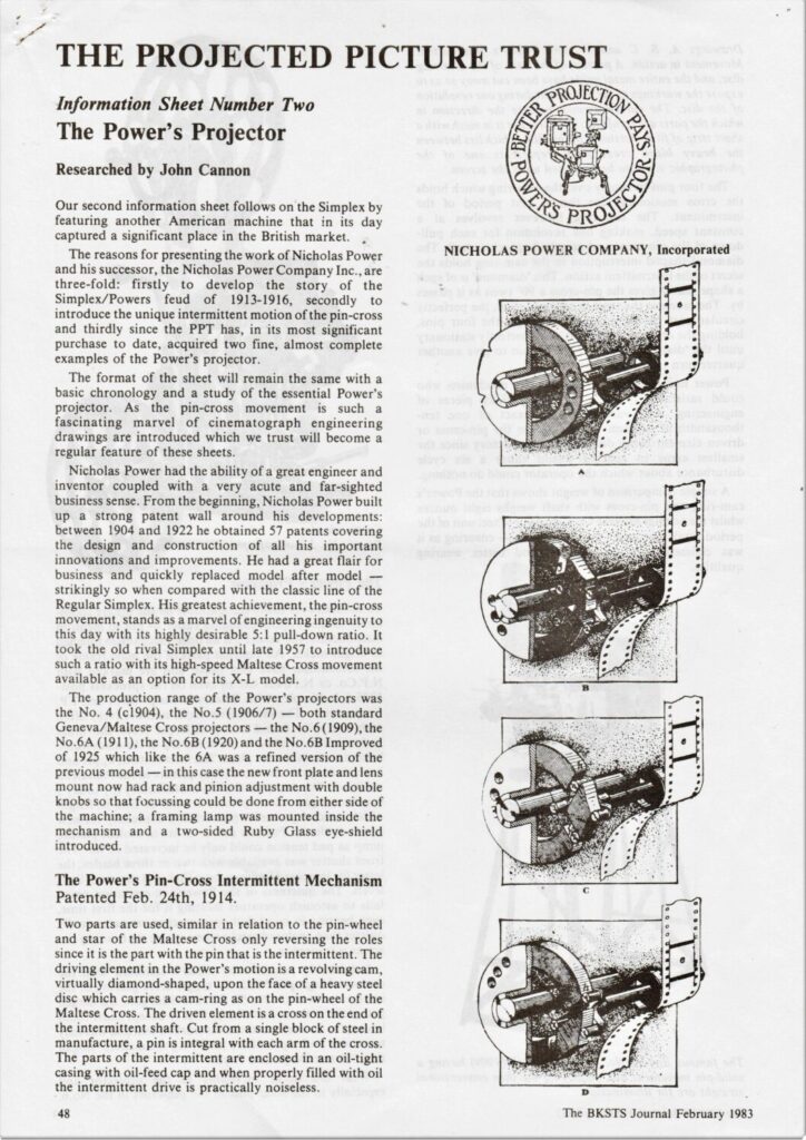 A Projected Picture Trust information sheet on the Power's projector, by John Cannon.