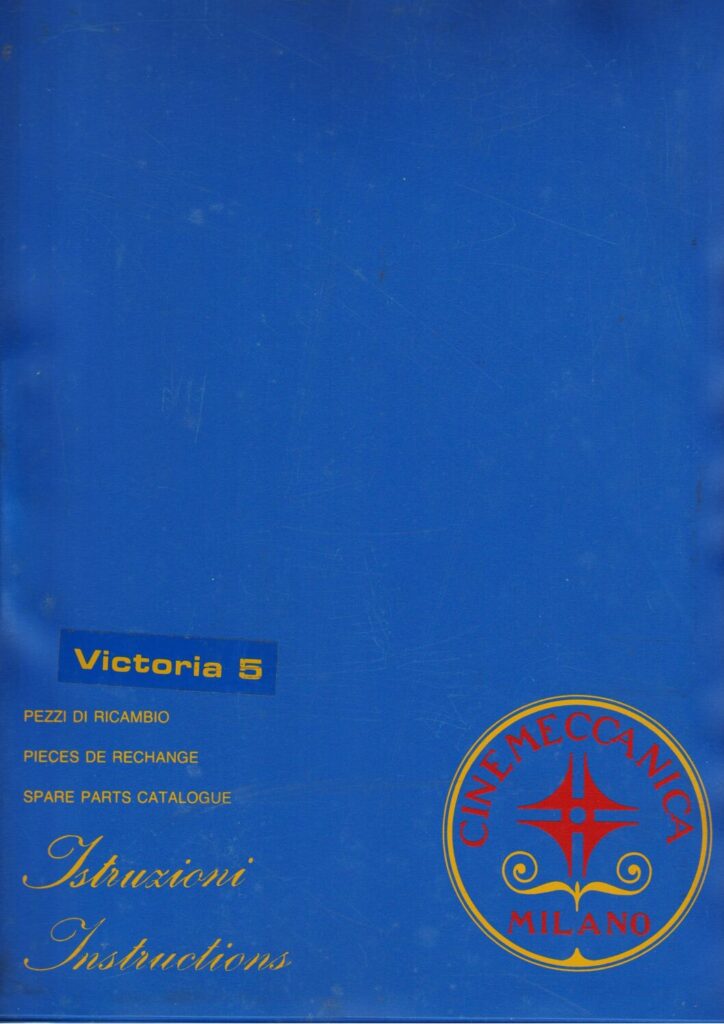 Repair instructions, spare parts list and diagrams for the Cinemeccanica Victoria 5 film projector.