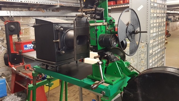 These last few weeks Peter Berry, Richard Hawley and Dion Hanson have been rebuilding a Gaumont Chrono which arrived with all the other equipment from Elstree. The two main things which were missing were the base plate which held the mechanism and lamp house, plus the lamp house itself.