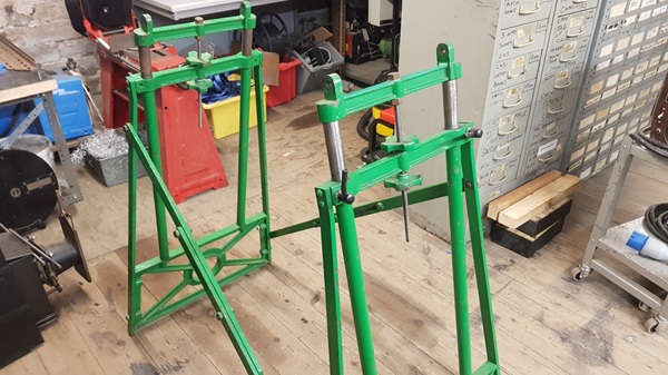 The final image below shows the complete machine after painting and with the lower spoolbox fitted in place. The machine will be used as the centre piece of our September 'Halifax Nostalgia Evening' in the Crossley gallery at Dean Clough.